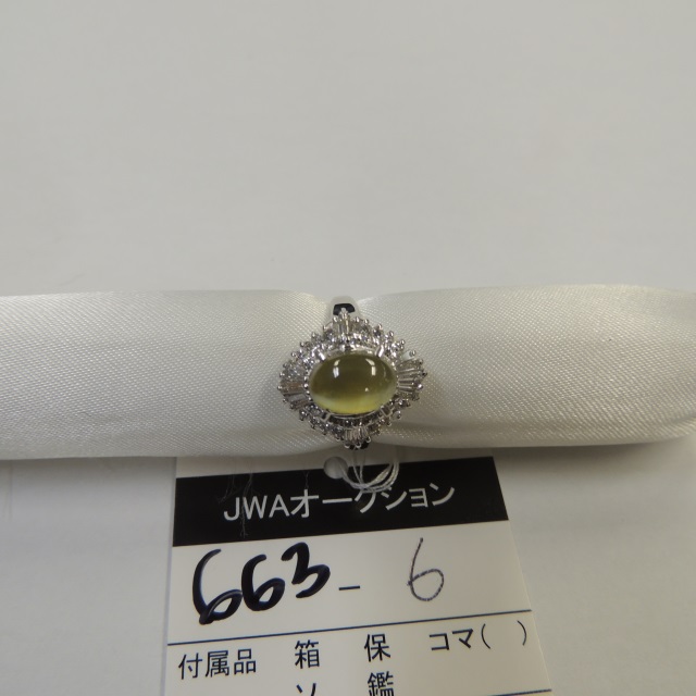 リング クリソベリルキャッツアイ ダイヤ Pt900 6.90g 石目:2.440 0.63