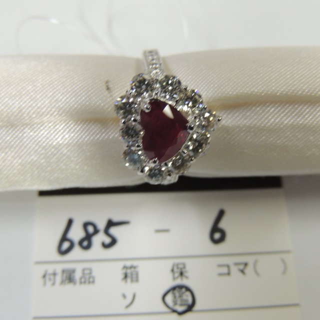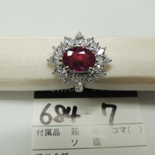 リング ルビー 非加熱 ダイヤ Pt900 12.00g 中鑑 石目:3.127 D1.98