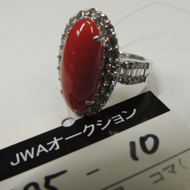 リング 珊瑚 ダイヤ K18WG 8.50g 石目:7.70 D1.63