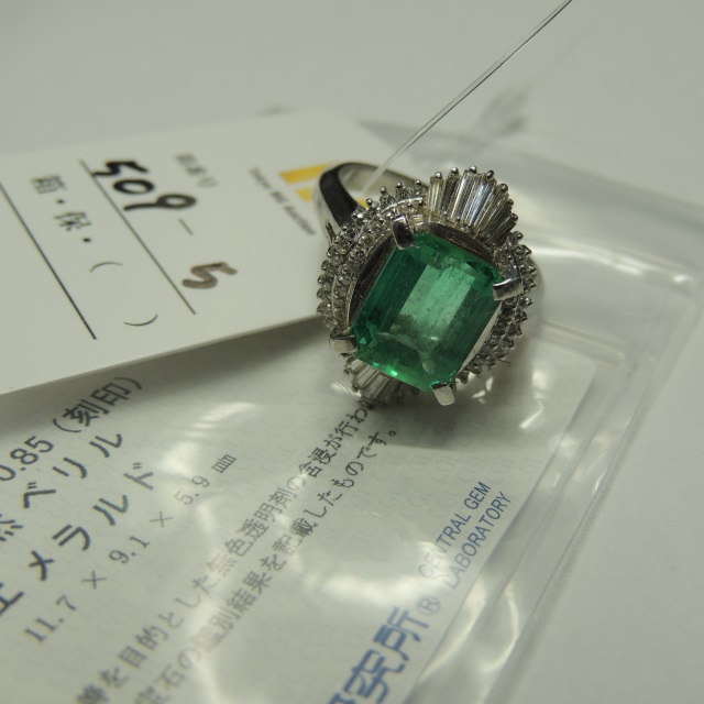リング エメラルド ダイヤ Pt900 14.40g 中ソ 石目:5.09 D0.85