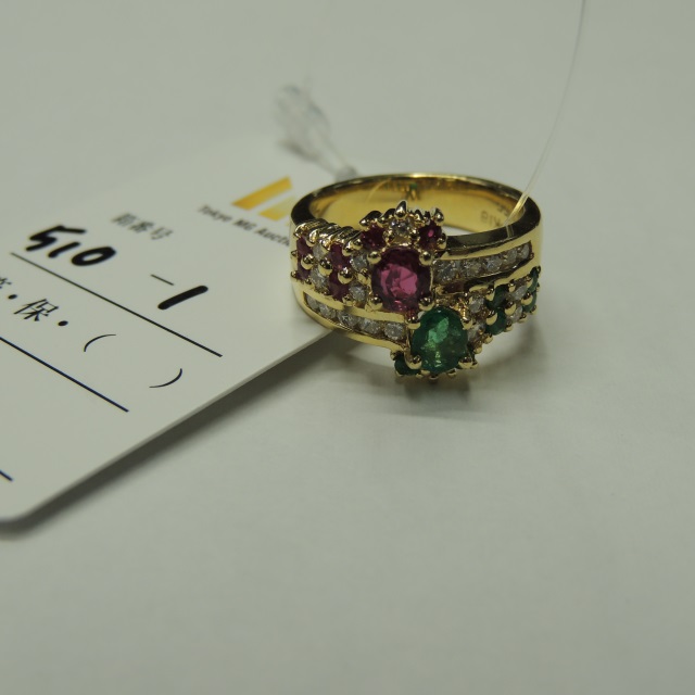 リング エメラルド ルビー ダイヤ K18 9.90g 石目:E0.37 R0.45 0.50 D0.55