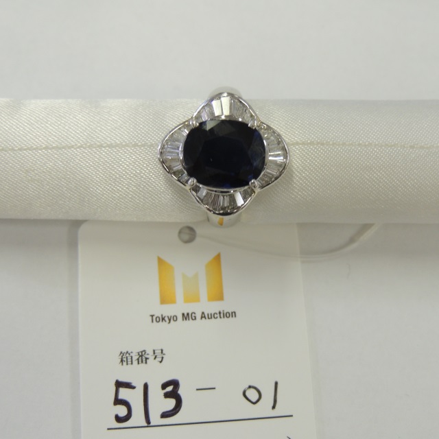 リング サファイア ダイヤ Pt900 11.50g 石目:4.47 D0.77