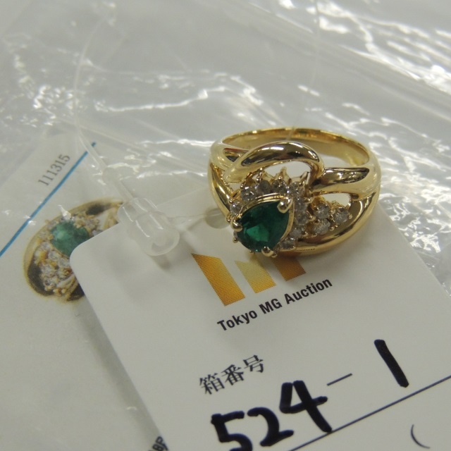 リング エメラルド ダイヤ K18 6.20g GRJソ 石目:E0.61 D0.40