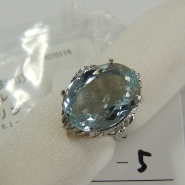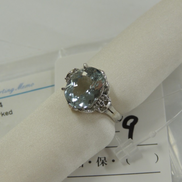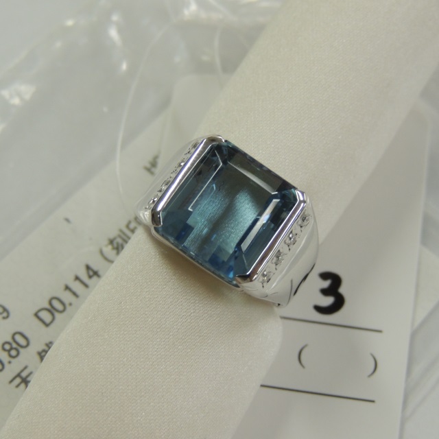 リング アクアマリン ダイヤ Pt900 14.60g 中ソ 石目:AQ9.80 D0.114