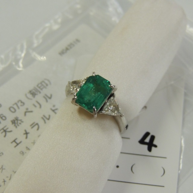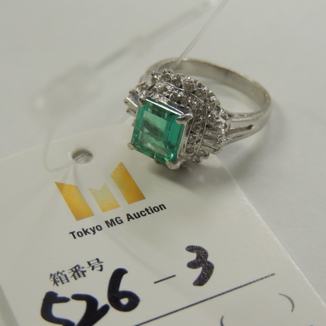 リング エメラルド ダイヤ Pt900 8.40g 石目:E1.373 D0.583