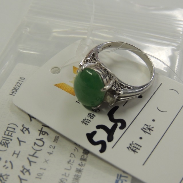 リング ヒスイ ダイヤ Pt900 8.60g ソ 石目:J3.63 D0.24