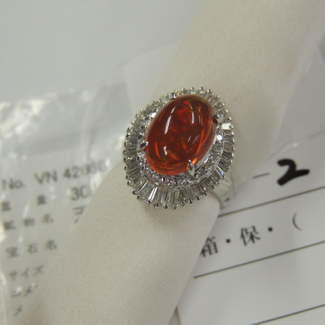 リング ファイアオパール ダイヤ Pt900 12.40g 中ソ 石目:3.01 D1.23