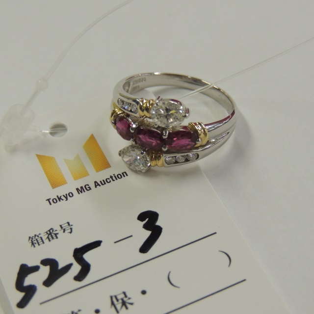 リング ルビー ダイヤ Pt900/K18 6.10g 鑑 石目:R1.02 D0.82 D0.10
