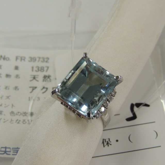 リング アクアマリン ダイヤ Pt900 10.50g 中ソ 石目:AQ13.87 D0.24