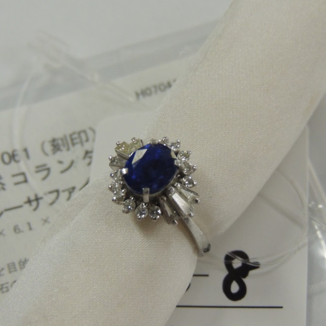 リング サファイア ダイヤ Pt900 12.20g 鑑 石目:S8.30 D1.68