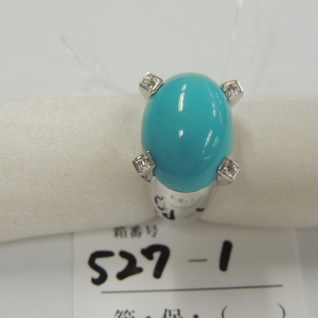 リング トルコ石 ダイヤ K18WG 9.50g 鑑 石目:D0.04