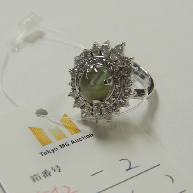 リング キャッツアイ ダイヤ PT900 9.80g 石目:CE3.01 D1.41