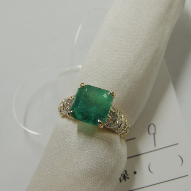 リング エメラルド ダイヤ K18 5.30g 石目:E3.45 D0.77
