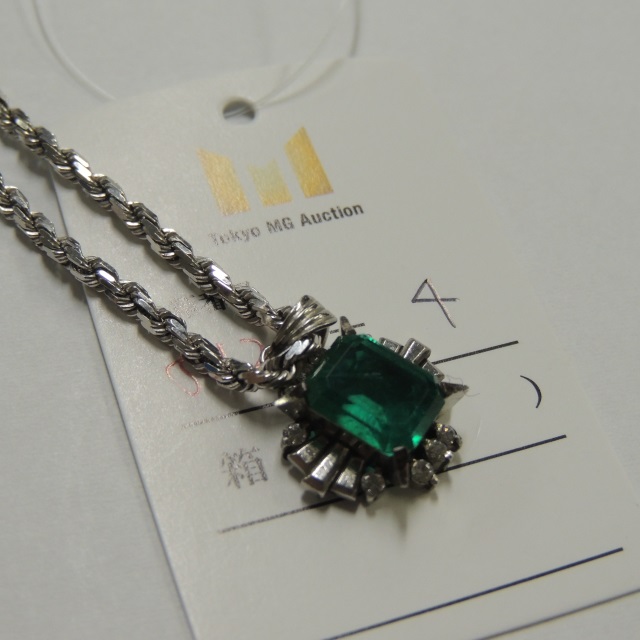 ペン・ネック エメラルド ダイヤ PT850 4.70g 石目:E1.08 D0.09