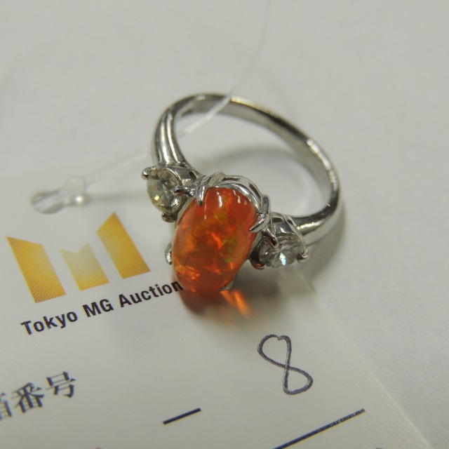 リング ファイヤーオパール ダイヤ PT900 5.30g 石目:1.54 D0.42