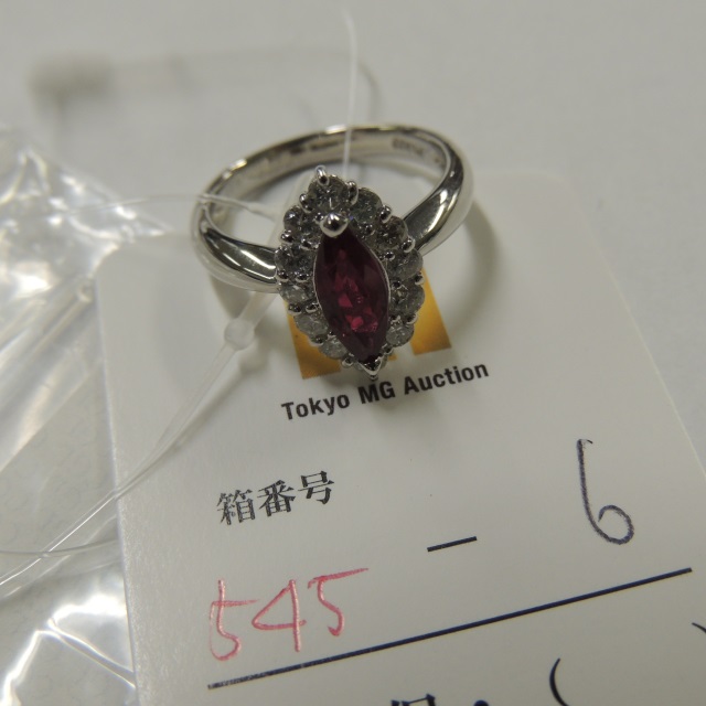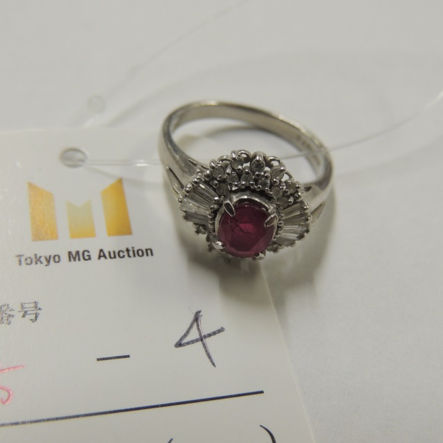 リング ルビー ダイヤ PT900 5.30g GRJソ 石目:R1.02 D0.48