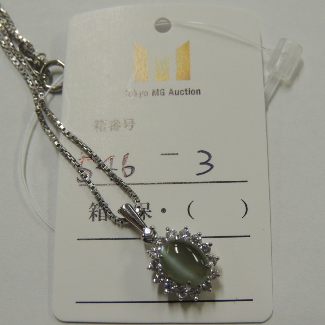 ペン・ネック キャッツアイ Pt900/850 6.60g 鑑 石目:CE2.23 D0.41