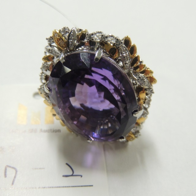 リング アメジスト K18/Pt900 27.80g 石目:A41.6 D0.28