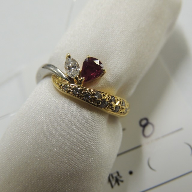 リング ルビー ダイヤ K18/Pt900 4.20g 石目:R0.27 D0.11 0.09