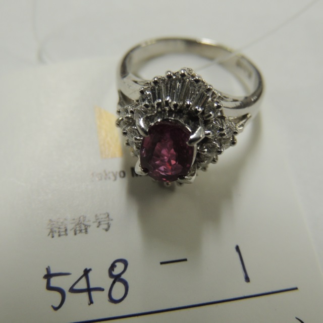 リング ルビー Pt900 7.70g 鑑 石目:R1.06 D0.51
