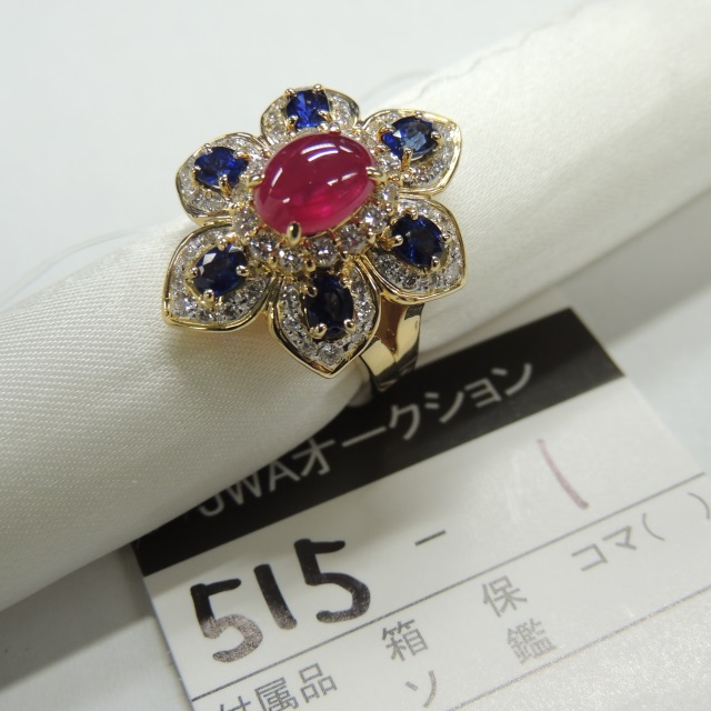 リング ルビー サファイア ダイヤ K18 10.80g 石目:1.81 1.29 0.70