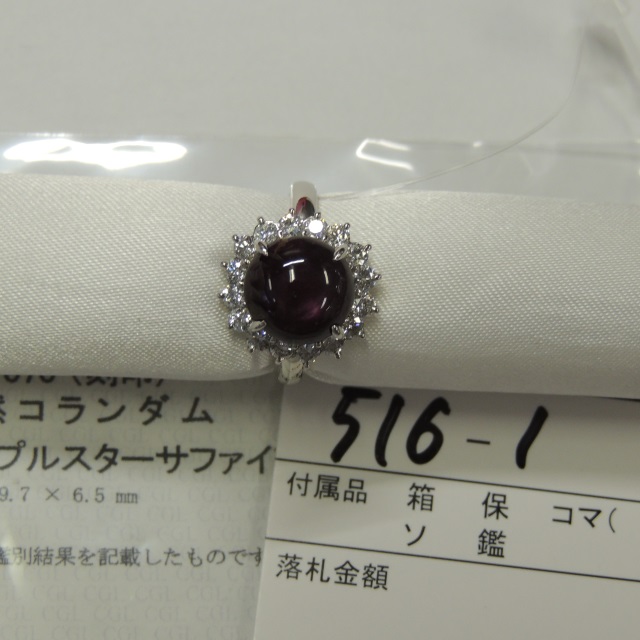 リング パープルスターサファイヤ ダイヤ Pt900 7.90g 中ソ 石目:SS6.50 FD0.70