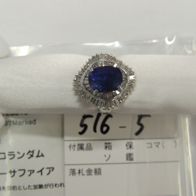 リング サファイヤ ダイヤ 潰れ Pt900 9.60g GRJソ 石目:S3.60 FD0.97