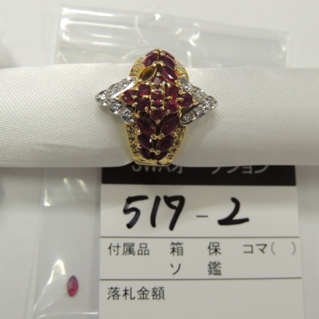 リング ルビー ダイヤ K18/Pt900 9.40g メレ 石目:R1.90 D0.18