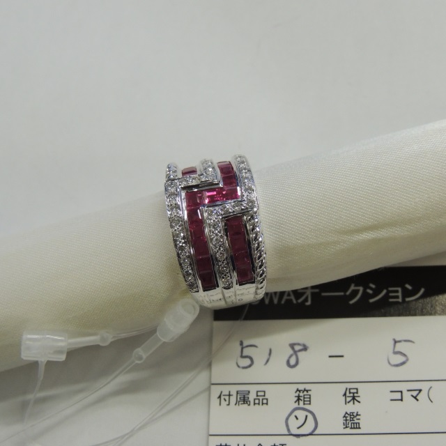 リング ルビー Pt900 12.30g 中ソ 石目:R2.61 D1.30