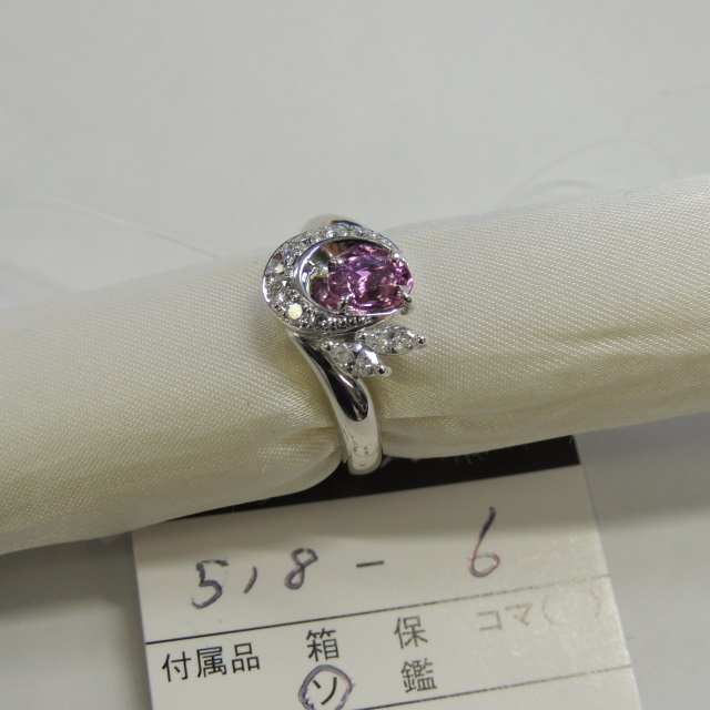 リング ピンクトパーズ Pt900 10.60g 中ソ 石目:0.96 D0.41