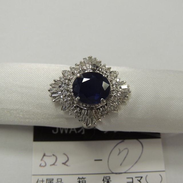 リング サファイヤ非加熱 ダイヤ Pt900 9.72g 鑑 石目:S3.33 D1.02