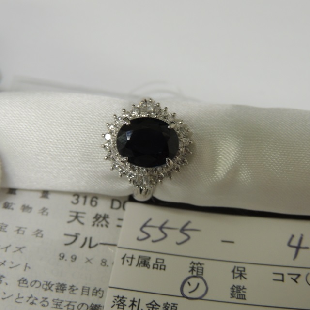 リング ブルーサファイヤ 加熱 Pt850 7.00g 中ソ 石目:S3.16 FD0.57