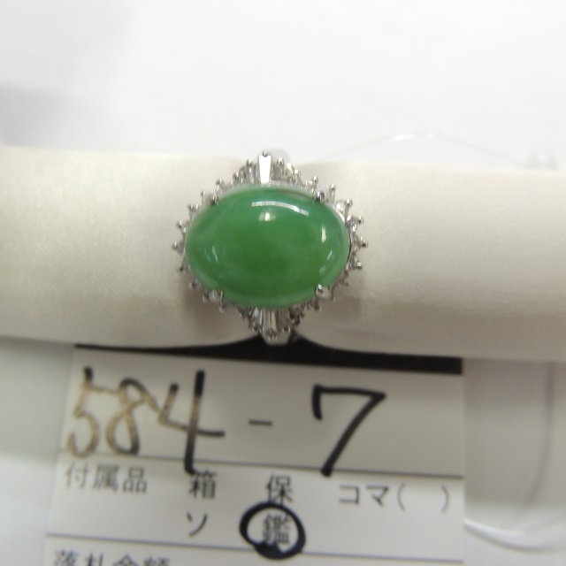 リング ヒスイ ダイヤ Pt900 8.40g 鑑 石目:JA5.07 FD0.36