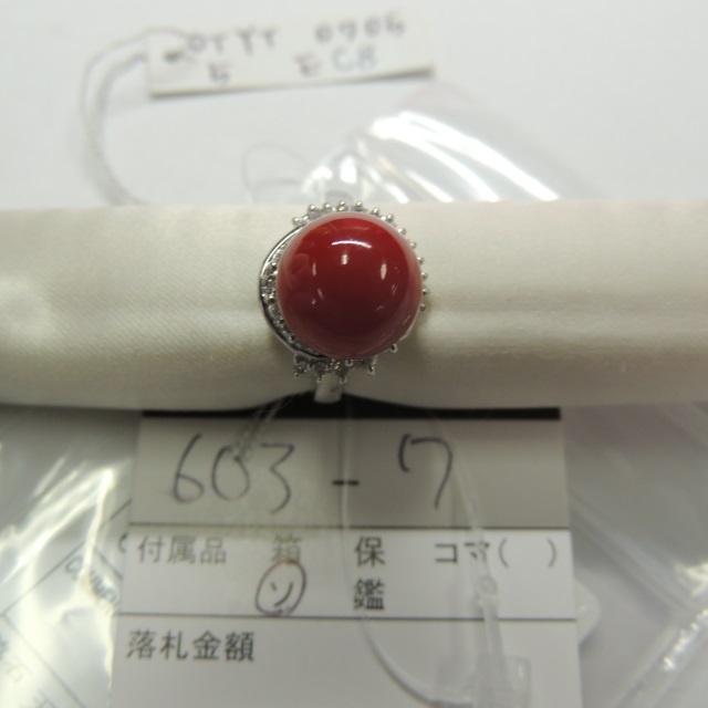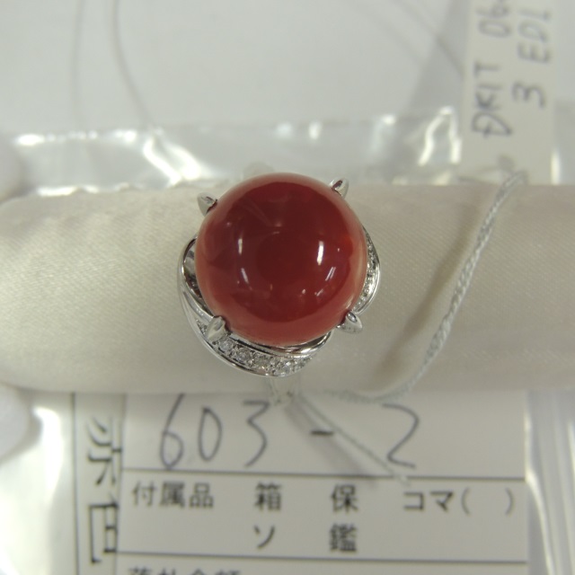 リング サンゴ 13.5mm ダイヤ Pt900 12.60g ソ 石目:0.12