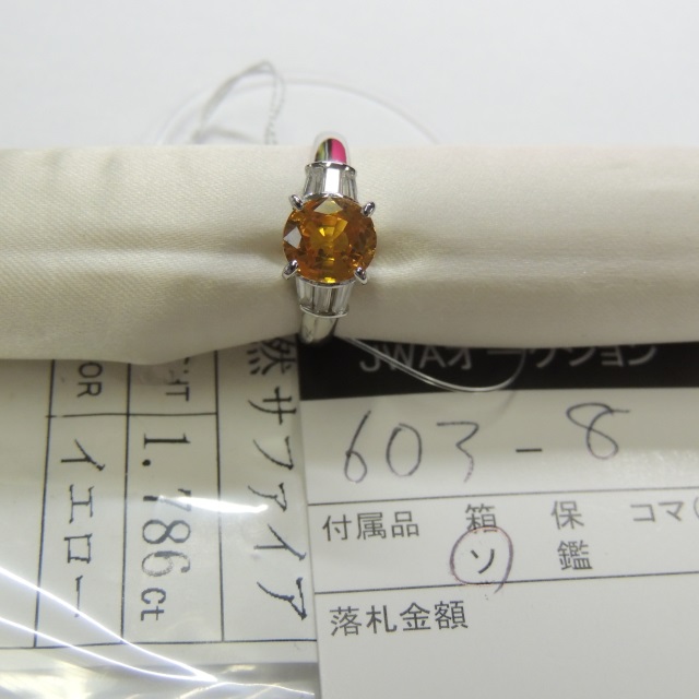 リング イエローサファイア Pt900 4.60g ソ 石目:1.786 0.3