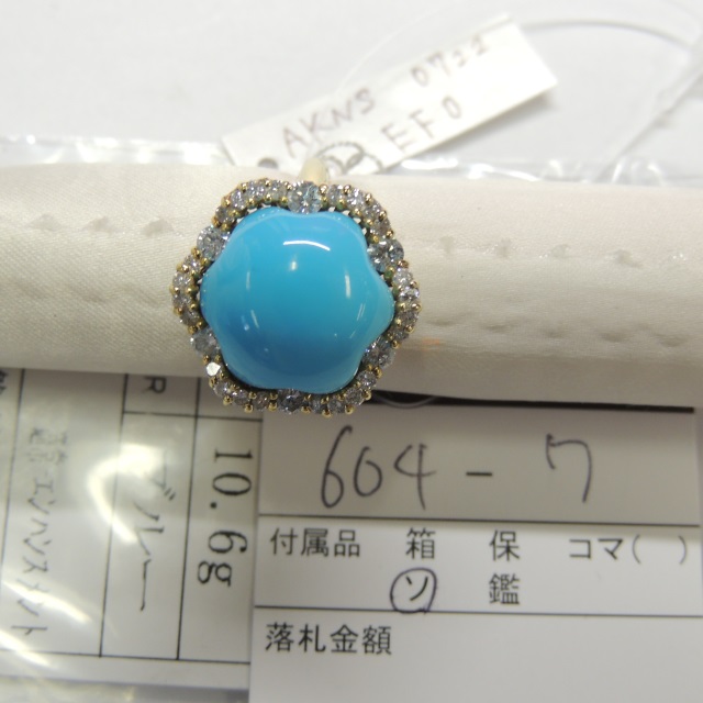 リング トルコ石 ダイヤ K18 10.60g ソ 石目:0.8