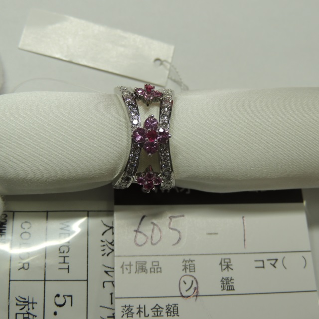 リング ピンクサファイア Pt900 9.60g ソ 石目:S1.07 D0.305 D1.45