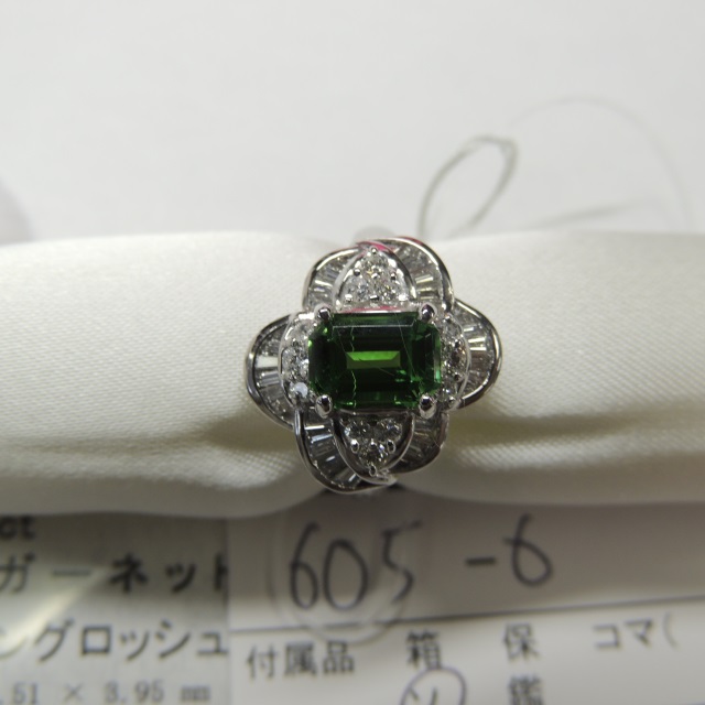 リング グリーングロッシュラーガーネット Pt900 9.20g 中ソ 石目:1.565 0.6