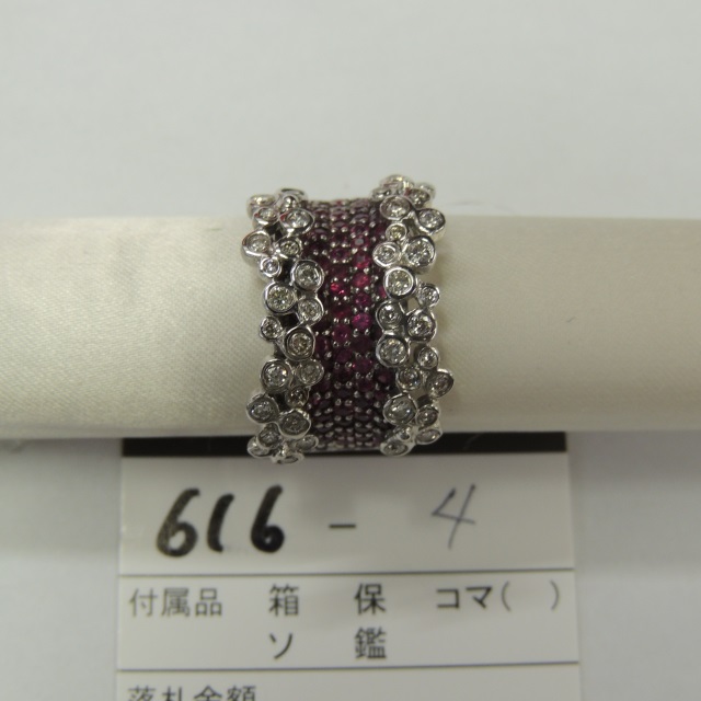 リング ルビー ダイヤ K18WG 11.80g 石目:1.63 D0.62