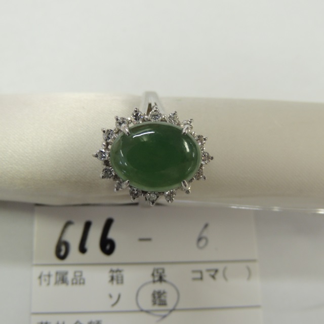 リング ヒスイ ダイヤ Pm900 7.10g 鑑 石目:3.31 D0.35