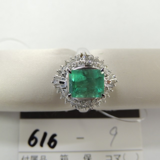リング エメラルド ダイヤ Pt900 8.10g 石目:2.11 D0.50