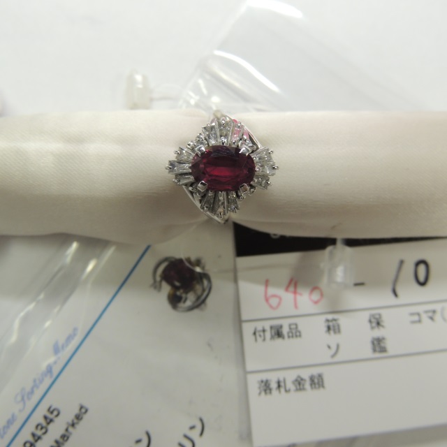リング ルビー Pt900 6.90g 鑑 石目:R1.17 0.87