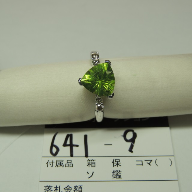 リング ペリドット ダイヤ K18WG 4.50g 石目:PE2.53 D0.11