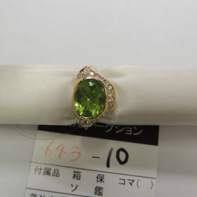リング ペリドット ダイヤ K18 8.40g 石目:2.91 0.08 D0.27