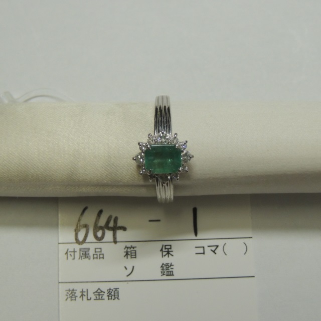 リング エメラルド Pt850 5.60g 石目:E0.75 D0.32