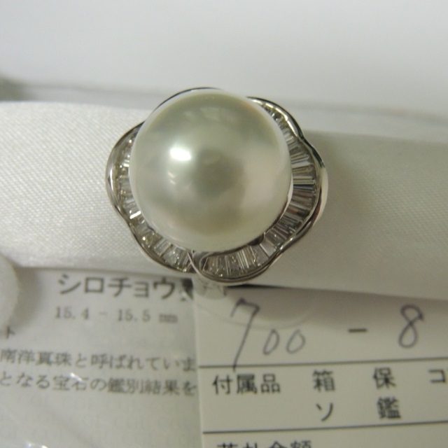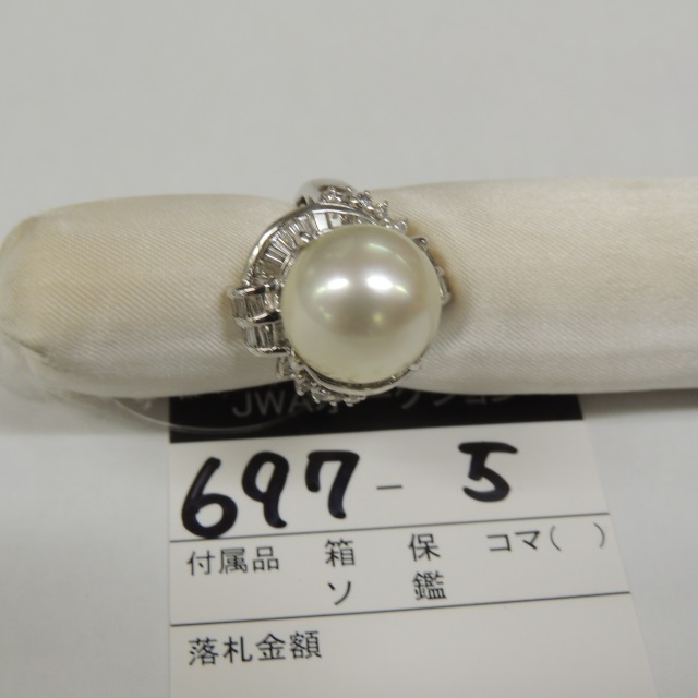 リング パール 12.5mm ダイヤ Pt900 14.80g 鑑