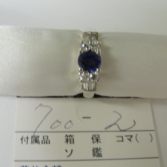 リング サファイヤ(通常加熱) Pt900 9.80g 中ソ 石目:S0.63 S0.34 FD1.20