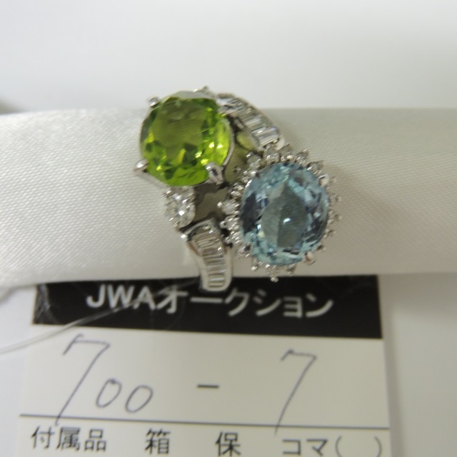 リング ペリドット アクアマリン ダイヤ Pt900 10.90g