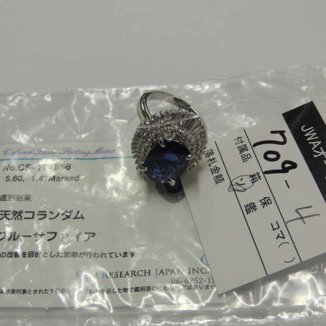 リング ブルーサファイア 加熱 Pt900 15.20g GRJソ 石目:S5.6 D1.47