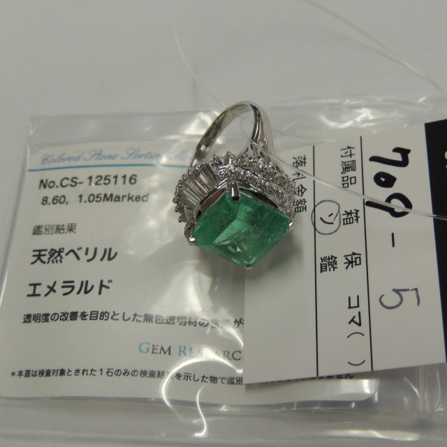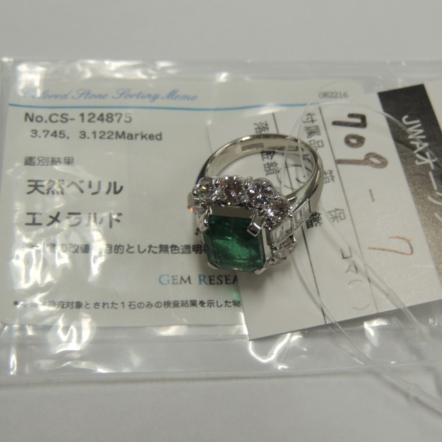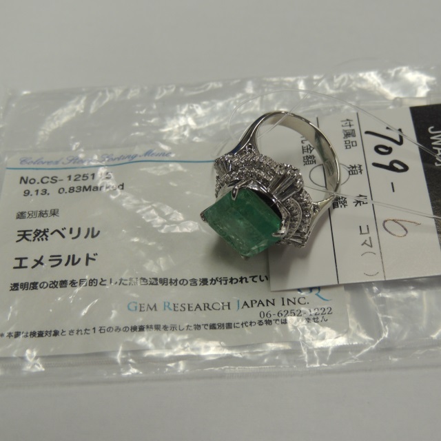 リング エメラルド Pt900 12.30g GRJソ 石目:E8.50 D1.05